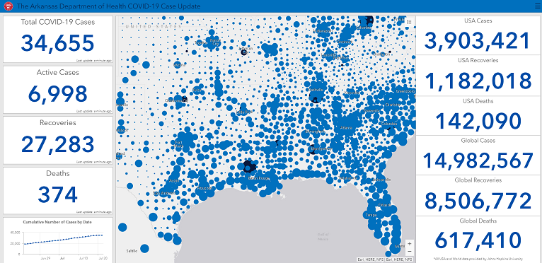 COVID-19 Métrica para el condado de Little River Casos Total Positivo: 67 Activo Positivo: 18 Recuperado: 48 Muertes: 1 Negativas: 1,001