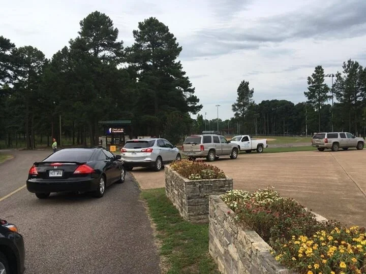 Los coches se alineaban temprano fuera del parque de la ciudad de Nashville en preparación para la distribución gratuita de pollo el miércoles patrocinada por Tyson Foods que comenzará a las 10 a.m. Louie Graves del líder de noticias de Nashville nos dice que la policía de Nashville informa que la línea de tráfico se extiende por 2 millas! (Foto cortesía de Louie Graves)